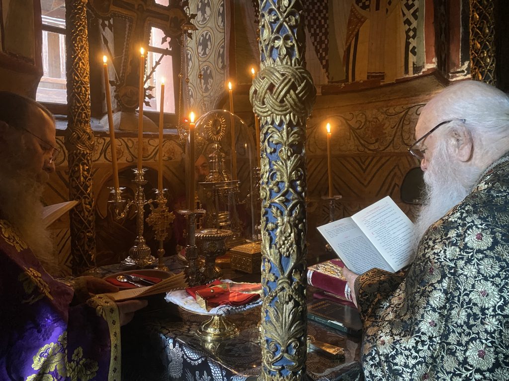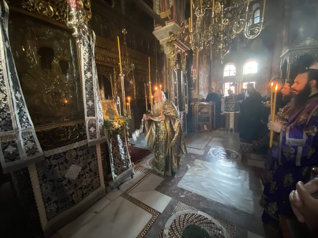 Τὴν κυριώνυμον ἡμέραν ἐτελέσθη Ἑσπερινὸς μετὰ Προηγιασμένης Θείας Λειτουργίας προεξάρχοντος τοῦ Καθηγουμένου τῆς Ἱερᾶς Μονῆς μας, Γέροντος Ἀλεξίου, πλαισιωμένου ὑπὸ τοῦ ἁγίου Καθηγουμένου τῆς Μονῆς Παντοκράτορος, Γέροντος Γαβριήλ, καὶ ὐπὸ πλειάδος ἱερέων.