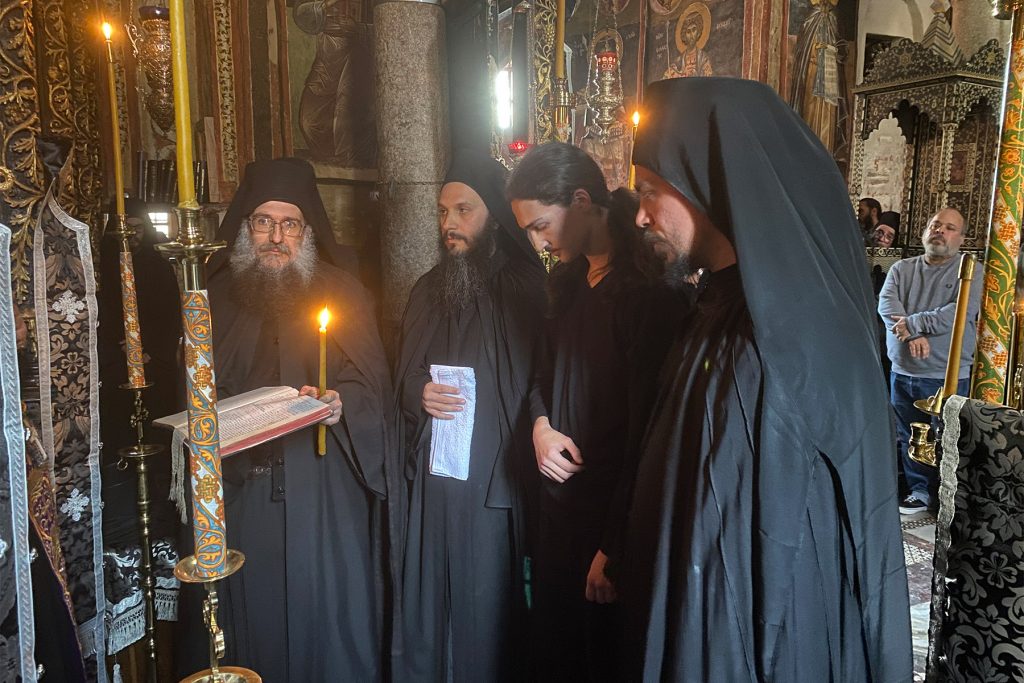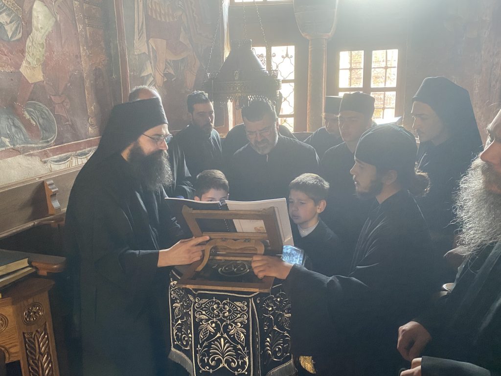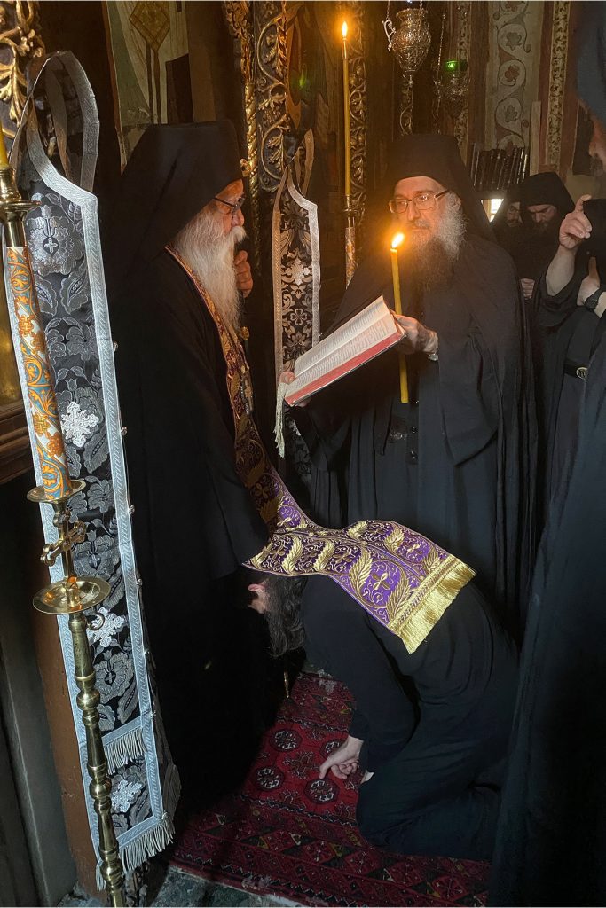 Ἀφ᾿ ἑσπέρας τῆς ἑορτῆς ἐτελέσθη πανηγυρικὸς Ἑσπερινὸς μετὰ Προηγιασμένης Θείας Λειτουργίας. Μετὰ δὲ τὸ Μεγάλο Ἀπόδειπνο ἐτελέσθη ἡ Ρασοευχὴ τοῦ ἀδελφοῦ Θεοδώρου, μετονομασθέντος εἰς Συμεώνα Μοναχόν, τιμώντας ἓναν ἐκ τῶν πρώτων Κτιτόρων τῆς Μονῆς μας, Συμεώνα τὸν «Ἡγιασμένον», ὁ ὁποῖος ἠσκήθη περὶ τὸν 11ον αἰῶνα καὶ ἄφησε μνήμη ἁγίου ἀνδρός.