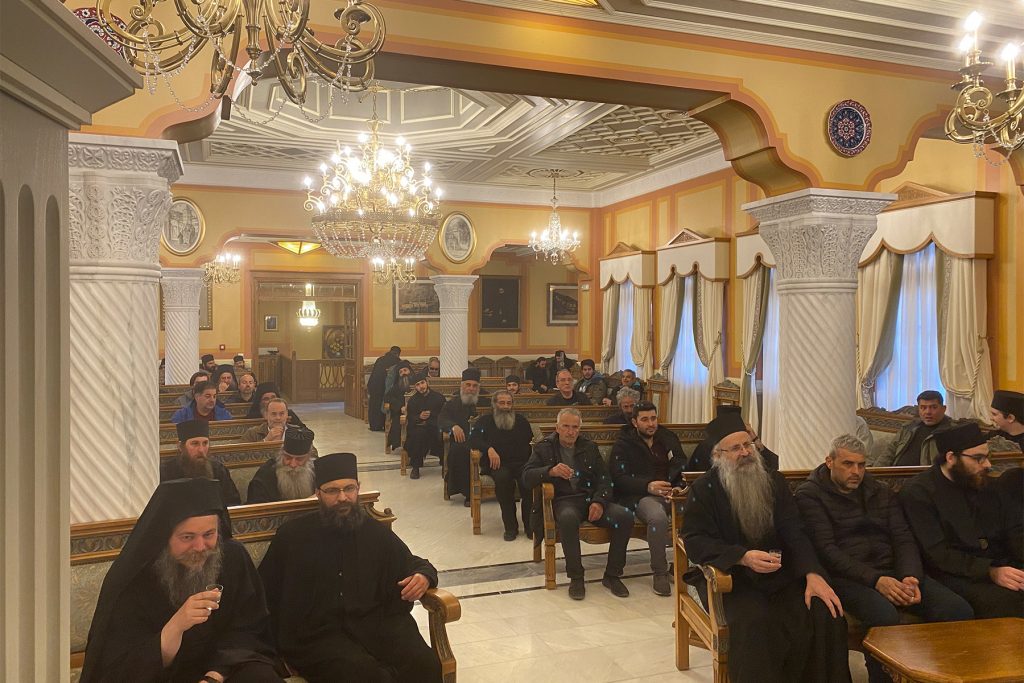 Ἀκολούθησε Πανηγυρικὴ Τράπεζα καὶ κέρασμα στὸ Συνοδικὸν τῆς Μονῆς, ὅπου ὁ Γέροντας Ἀλέξιος εὐχαρίστησε ἅπαντας τοὺς παρευρισκομένους διὰ τὸν κόπο των νὰ ἔλθουν εἰς τὸν παρόντα ἑορτασμόν, παροτρύνοντας αὐτοὺς εἰς ἔντονον καὶ ἔμπονον προσευχὴν διὰ τὴν κατάπαυσιν τοῦ ἀδελφοκτόνου πολέμου, ποὺ μαίνεται ἐν Οὐκρανίᾳ.